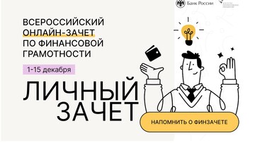 С 1 по 15 декабря пройдет пятый ежегодный Всероссийский онлайн-зачет по финансовой грамотности, который организует Банк России совместно с АНО «Агентство стратегических инициатив по продвижению новых проектов».