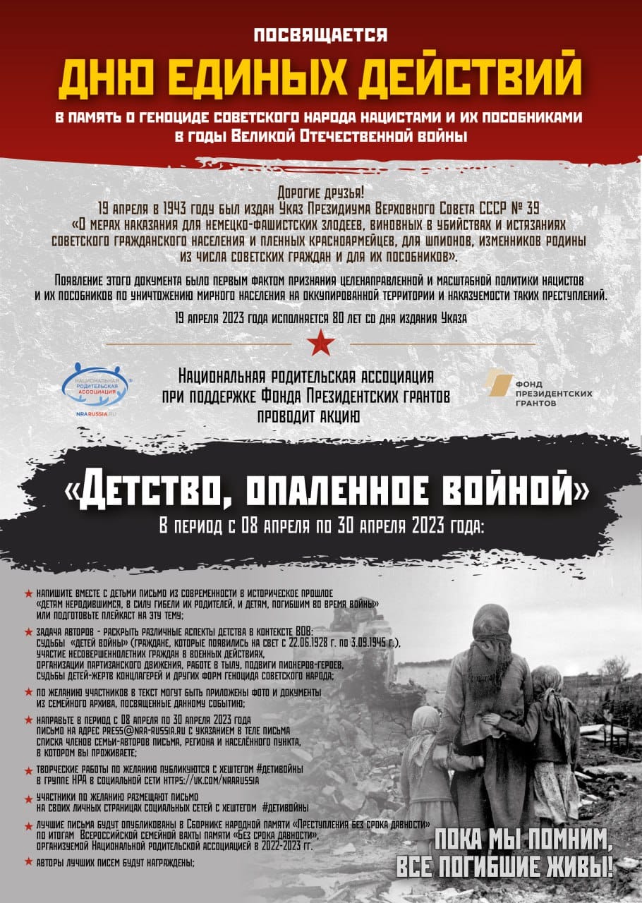 Дню единых действий в память о геноциде советского народа нацистами и их пособниками в годы Великой Отечественной войны посвящается! 12 апреля 2023